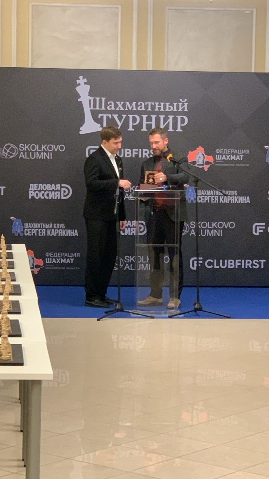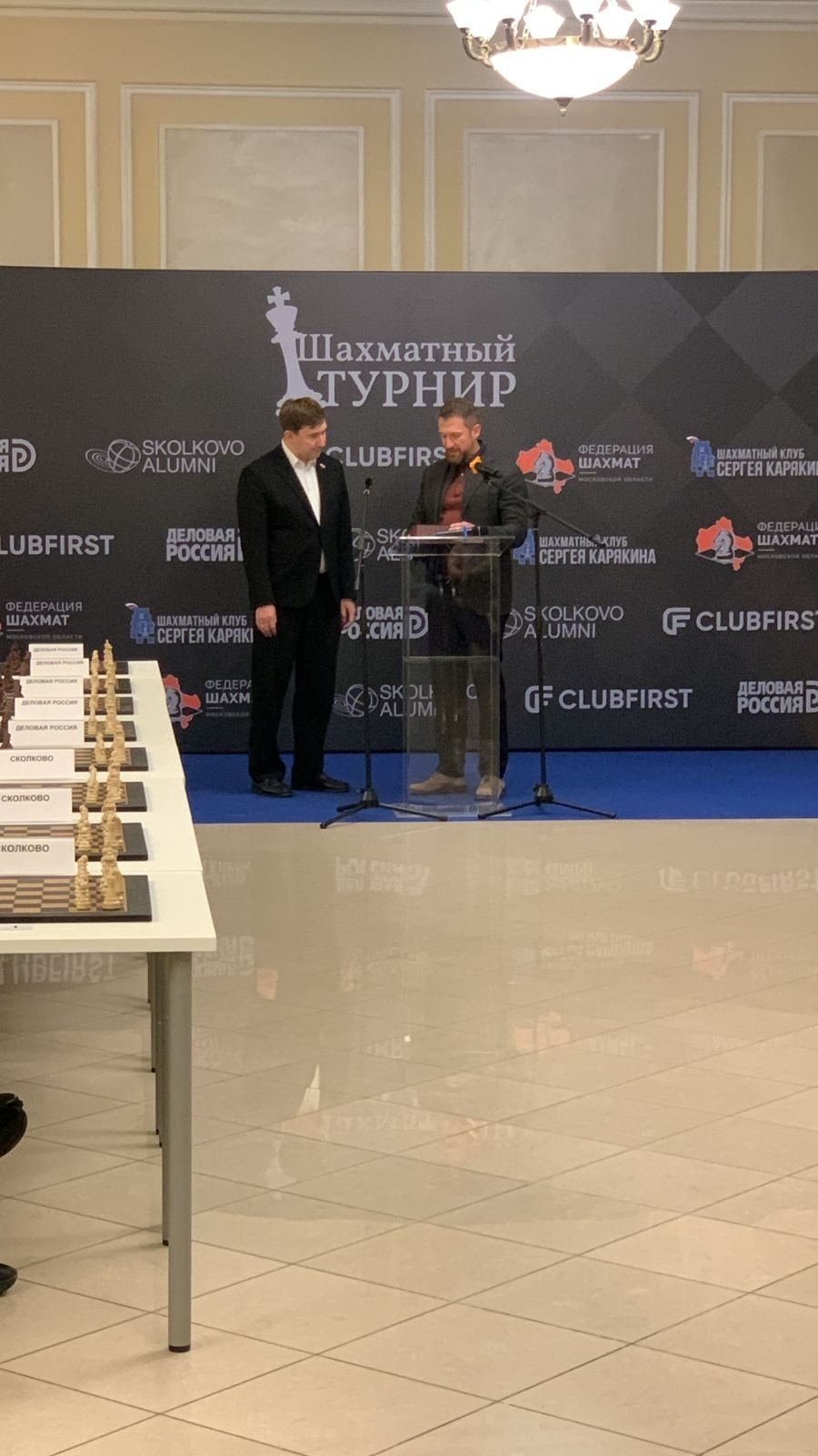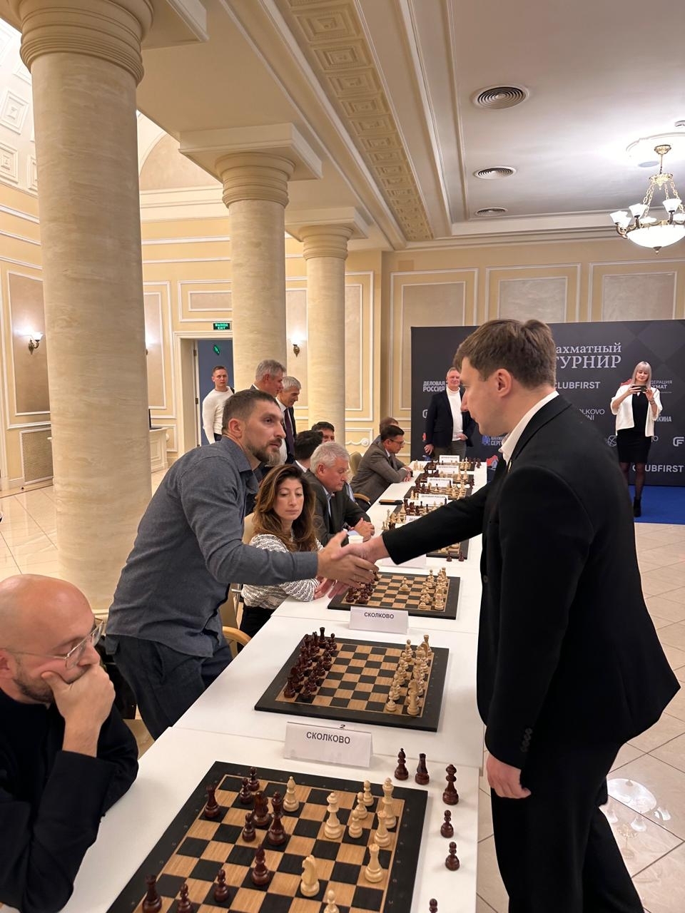 После сеанса состоялся командный шахматный турнир, в котором соперничали три команды: клуб «Сколково», «Деловая Россия» и бизнес-школа «Клуб первых». По итогам соревнований: